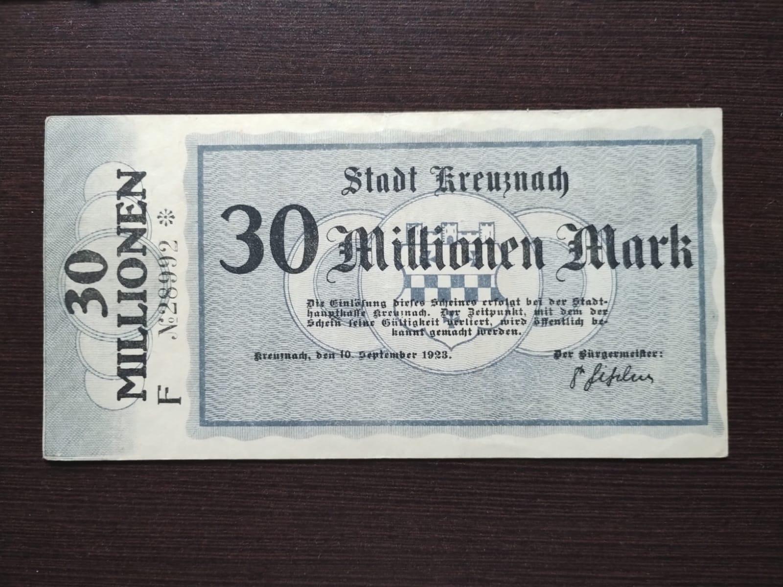 |  | R$10,00 | Cédula da Alemanha 50 Pf 1921 SOB | |  | ![]() | R$8,50 | 2 notgelds da mesma cidade 1921 | |  | ![]() | R$4,50 | Cédula da Alemanha 10 Helller 1920 | |  |  | R$15,00 | Cédula da Alemanha 500000 Mark 1923 | |  | ![]() | R$4,00 | Cédula da Austria 10 Heller 1919 | |  |  | R$18,00 | 3 Cédula da Alemanha da mesma cidade 1922 FC | |  |  | R$11,50 | 3 Cédulas Notgelds 1920 (da mesma cidade) | |  | ![]() | R$13,00 | 3 Cédulas da Alemanha 1920 (notgelds) | |  |  | R$8,50 | Cédula da Alemanha 1/2 mark 1918 SOB | |  |  | R$10,00 | 2 Cédula da Alemanha da mesma cidade | |  |  | R$5,00 | Cédula da Alemanha 50 heller 1920 | |  |  | R$4,50 | Cédula da Alemanha 50 Heller 1920 | |  |  | R$7,50 | 2 cédulas notgelds 1920 (da mesma cidade) | |  |  | R$12,00 | 3 cédulas notgelds 1920 (da mesma cidade) | |  |  | R$42,50 | 7 Cédulas da Alemanha da mesma cidade 1921 | |  |  | R$5,00 | Cédula da Alemanha 25 Pf 1920 FE | |  | ![]() | R$15,00 | Cédula da Alemanha 30000000 Mark 1923 | |  |  | R$31,50 | 5 Cédulas da Alemanha da mesma cidade | |  |  | R$49,50 | Folha com 9 Cédulas da Alemanha da mesma cidade 1920 | |  | ![]() | R$15,00 | Cédula da Alemanha 50000000 Mark 1923 | |