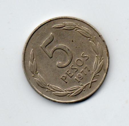 |  | R$4,20 | Moeda do Chile 5 pesos 1977 | |