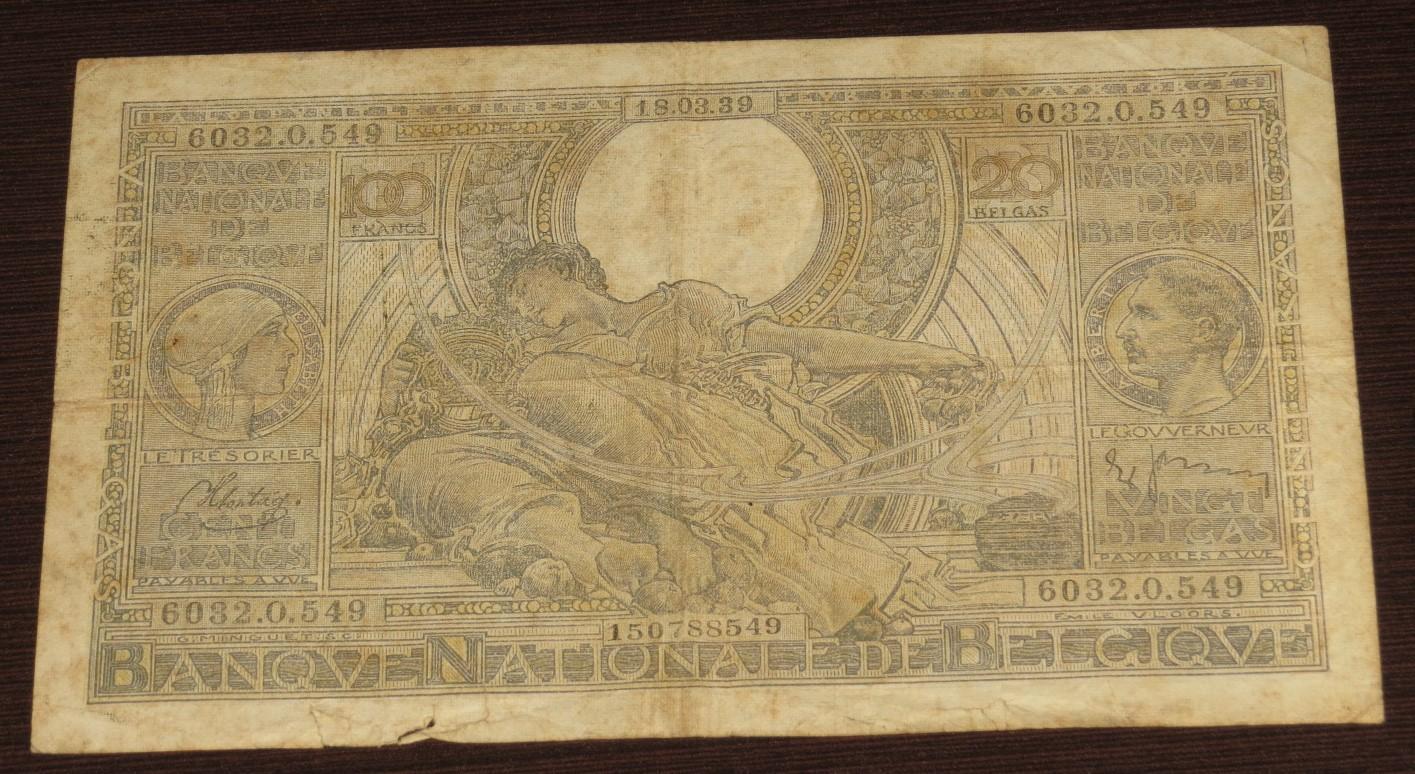 |  | R$28,50 | Cédula Grande da Bélgica 100 francs 1939 MBC- | |